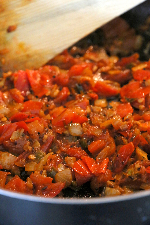 Add the tomato and cook until tomatoes are mushy. (13-15 minutes till this step).
