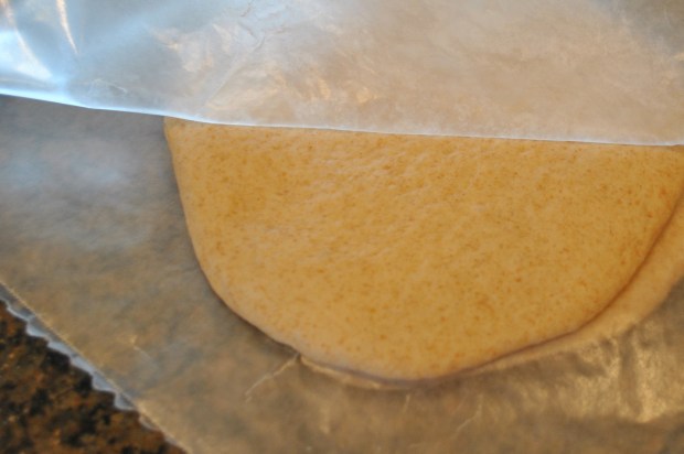 Method: Preheat oven to 450 degrees. Combine all ingredients in your kneading apparatus (I use my bread maker) you can also use your hands 🙂 knead dough for 10 minutes or until smooth and elastic. Let rest for 10 minutes. Divide into 6 or 8 pieces (I did 6 pieces and it made for a thick calzone crust, next time I’ll do 8) and roll out into very thin 8 inch rounds. I stick my dough between pieces of waxed or parchment paper to keep the dough rounds from sticking to each other while I work with the other pieces.